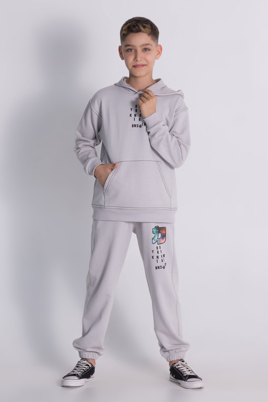 Erkek çocuklar için tasarlanmış bu modern eşofman takımı, günlük kullanımda hem şıklığı hem de konforu bir arada sunar.