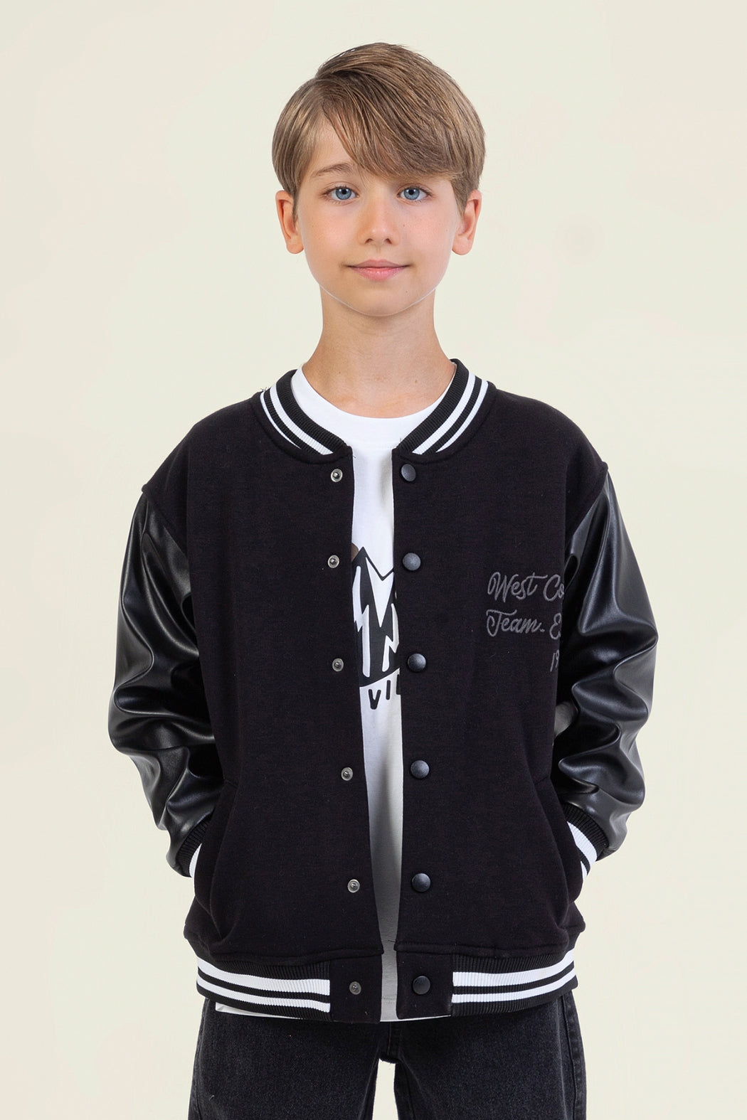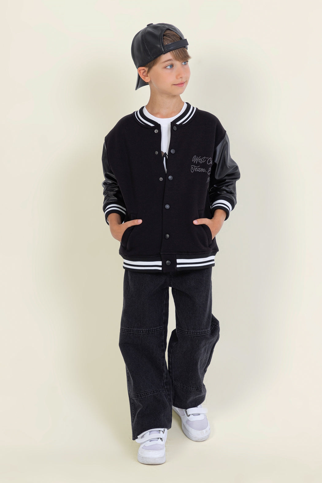Erkek Çocuk Kolej Deri Kollu Şardonlu Ceket Mont