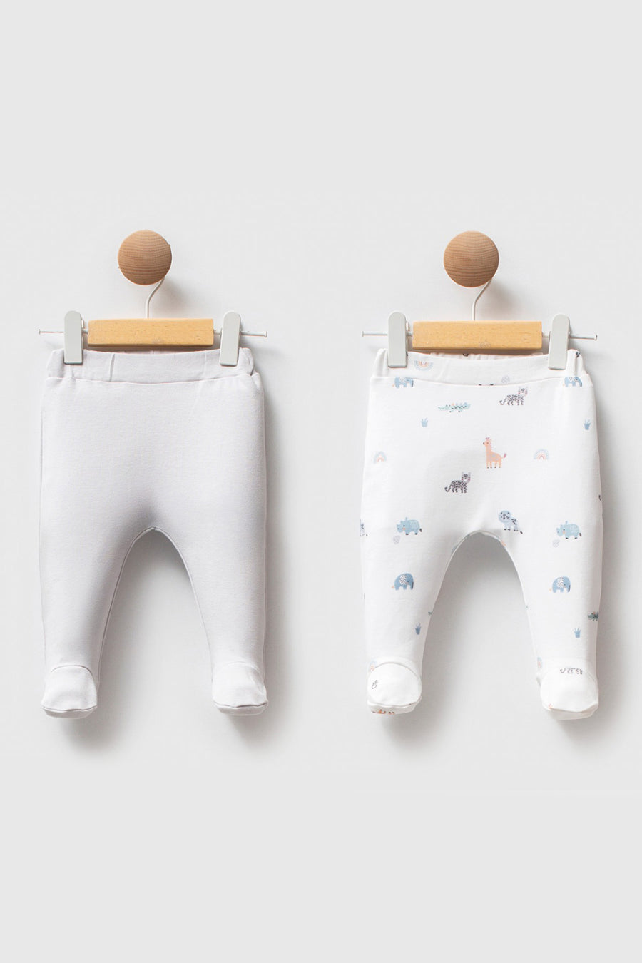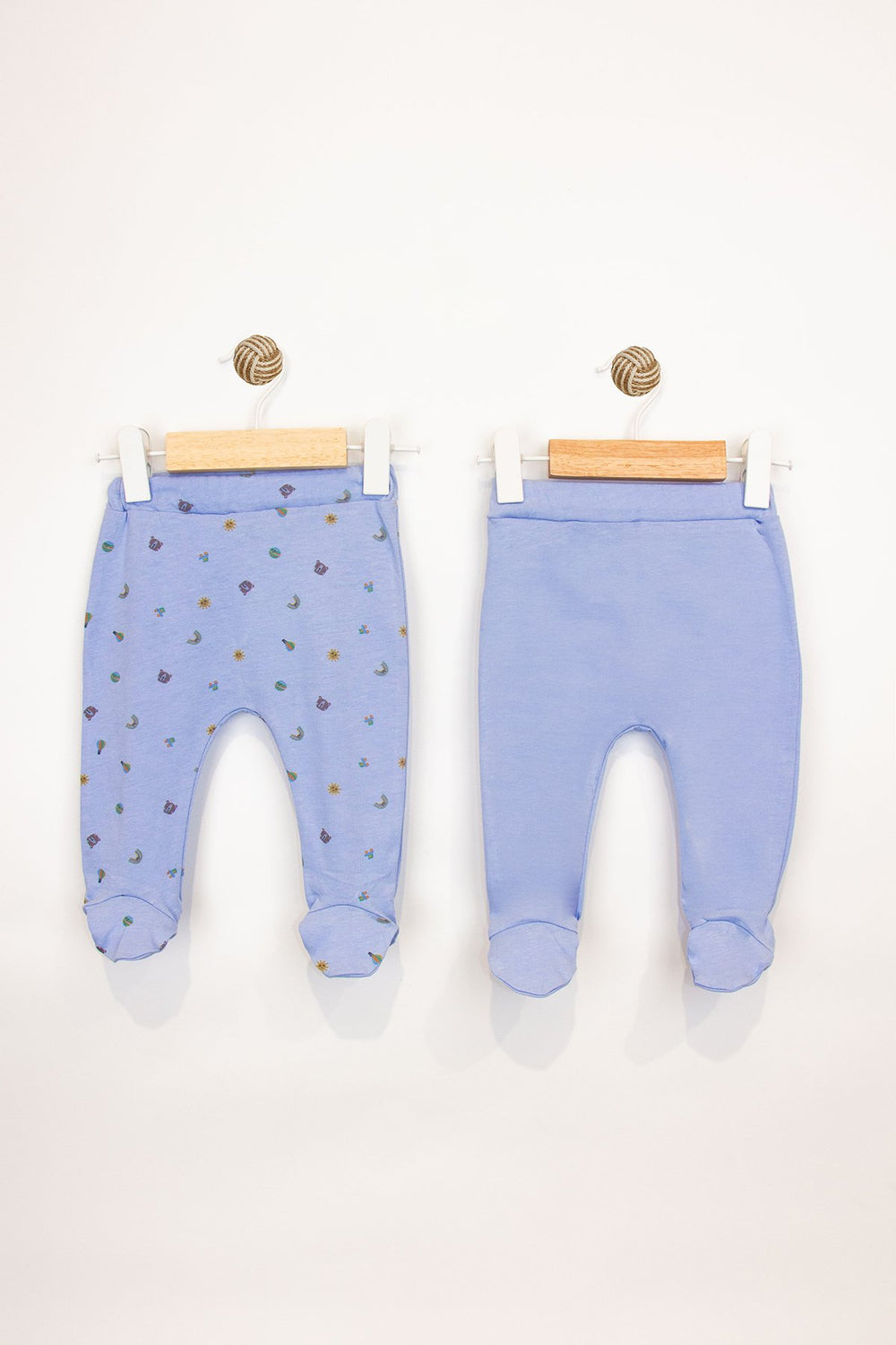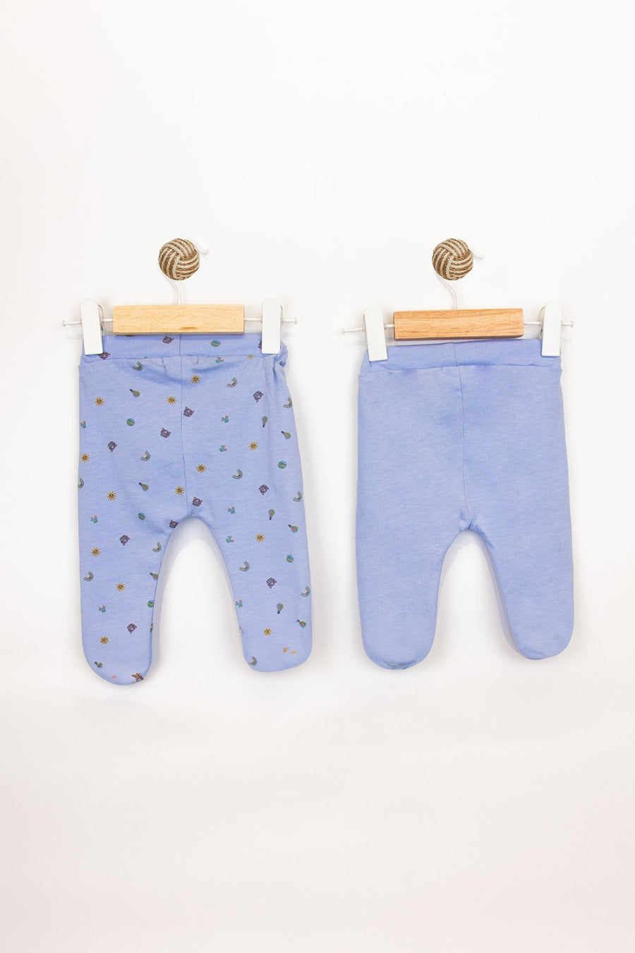 Desenli Pamuklu Beli Lastikli Patikli 2'li Erkek Bebek Alt