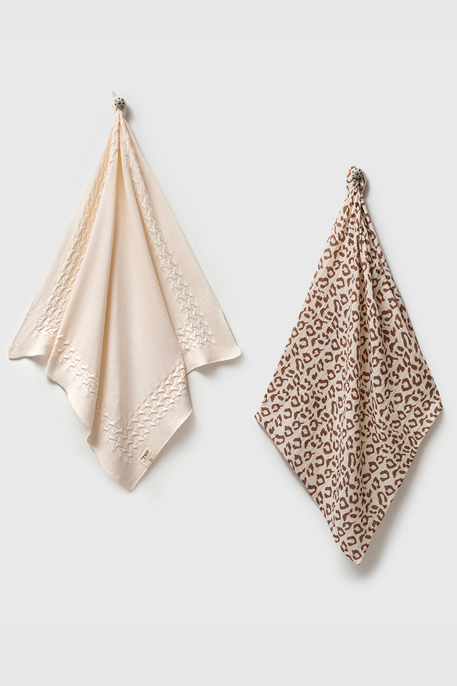 Nipperland 80*90 cm Dokulu Triko Pamuklu Örgü Leopar Desenli ve Dantelli Bebek Battaniye