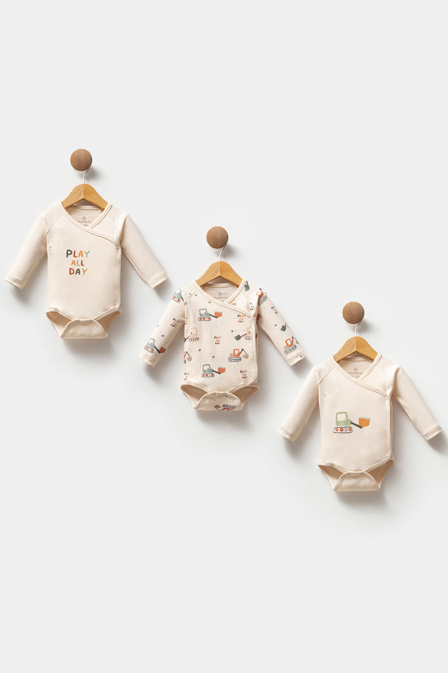 Uzun Kollu “Play All Day” Temalı Yandan Çıtçıtlı Organik Pamuklu 3lü Erkek Bebek Body