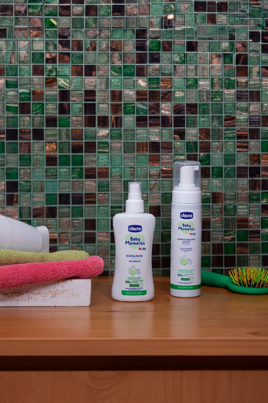 Saç tarama kabusu olmaktan çıkıyor. Chicco Baby Moments Kids saç açıcı sprey, hassas çocuk ciltleri için özel olarak geliştirilmiş doğal içerikli formülü ile hem güvenli hem etkili bir çözüm sunar.